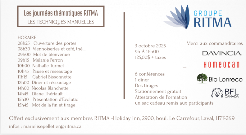 Contactez : Marie-Lise Pelletier marielisepelletier@ritma.ca